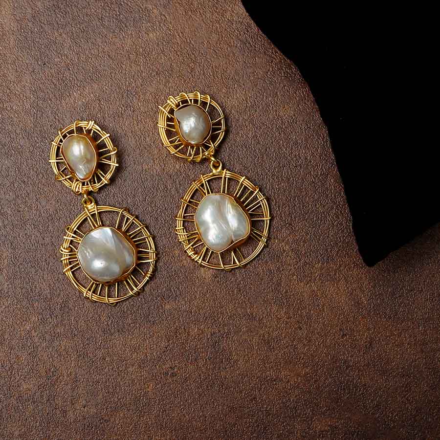 White Gold Tone Handcrafted Earrings with Pearl