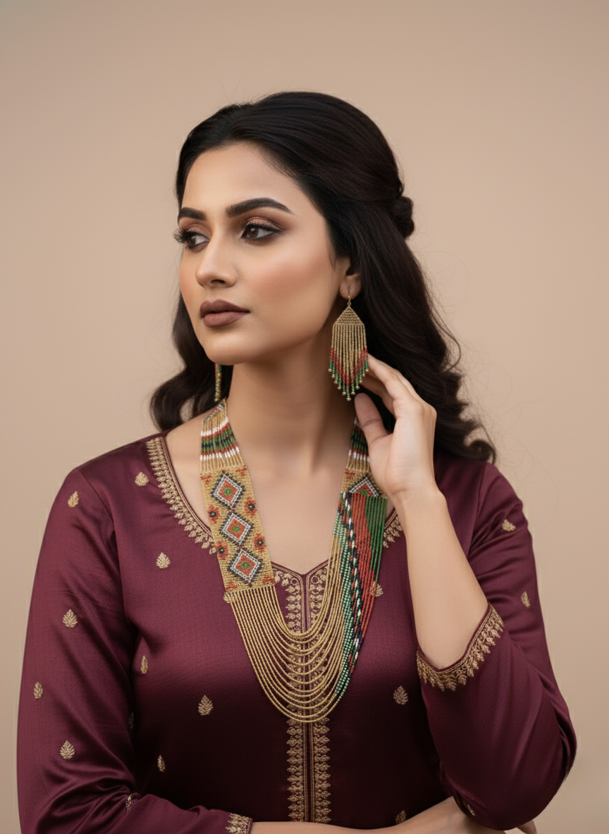 Hey Beautiful! This Classy and Trendy Neckpiece has been crafted especially for you. Pair these intricate with any Outfit to craft a precious look in no time at all. It is a great pick for a Festive Event.