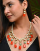 It’s a Jewlery set that suit and fits the Princess and Queens! They exude the royal vibes with the royal, antique, vintage Hight matte gold finish touch with stones, Kundan work, temple cuts jewelry sets. It consists of necklace set with matching earrings or Matha Pattis which is crafted from high gold polished 1 gm and matte finish and with brass as the metal into it. Celebrate the uniqueness in yourself by making yourself look more pretty in our pieces.