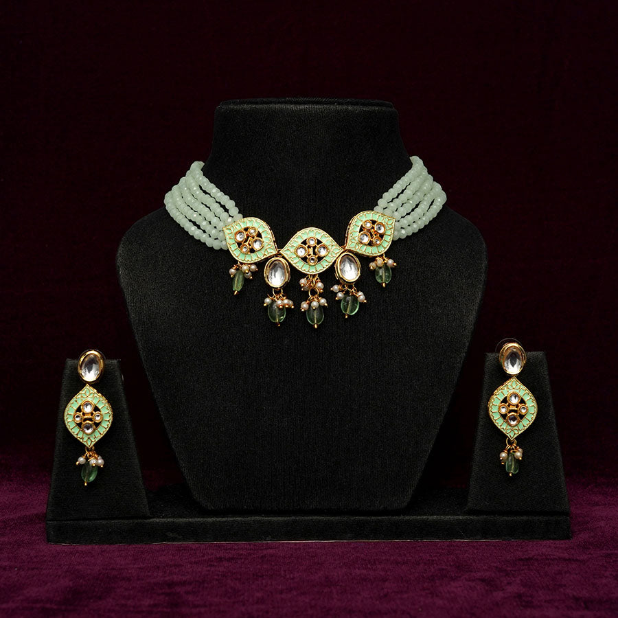 Meraki Beaded Kundan Stone Meenakari Necklace