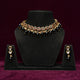 It’s a Jewlery set that suit and fits the Princess and Queens! They exude the royal vibes with the royal, antique, vintage Hight matte gold finish touch with stones, Kundan work, temple cuts jewelry sets. It consists of necklace set with matching earrings or Matha Pattis which is crafted from high gold polished 1 gm and matte finish and with brass as the metal into it. Celebrate the uniqueness in yourself by making yourself look more pretty in our pieces.