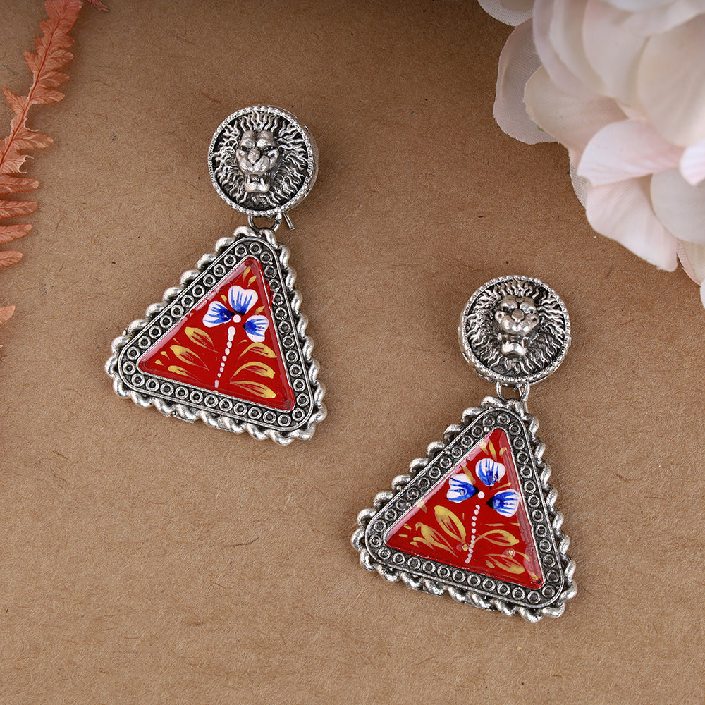 Lion Design with Handprinted Oxidized Earring