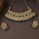 It’s a Jewlery set that suit and fits the Princess and Queens! They exude the royal vibes with the royal, antique, vintage Hight matte gold finish touch with stones, Kundan work, temple cuts jewelry sets. It consists of necklace set with matching earrings or Matha patties which is crafted from high gold polished 1 gm and matte finish and with brass as the metal into it. Celebrate the uniqueness in yourself by making yourself look more pretty in our pieces.