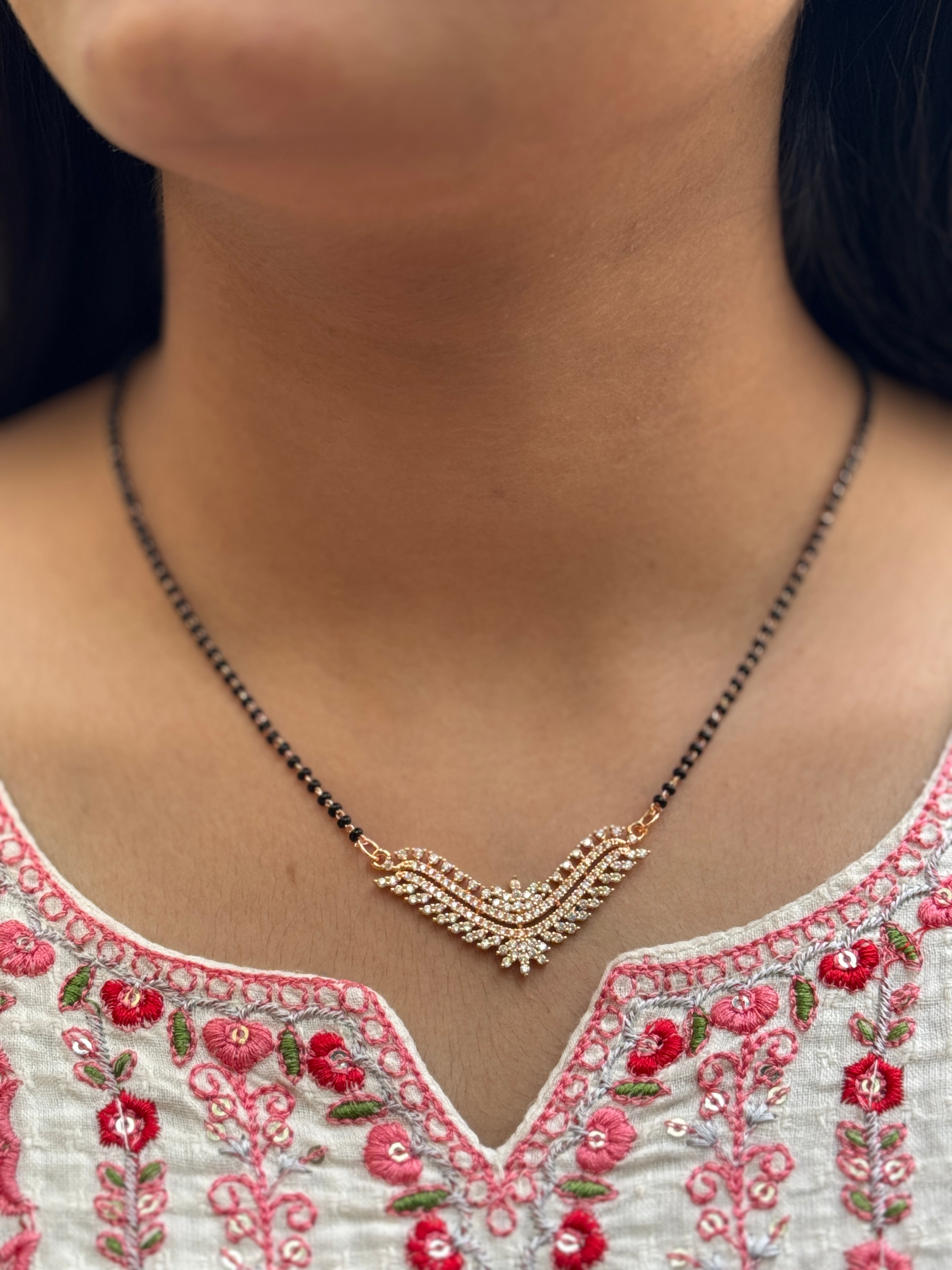 A signifying design, adorn in a stylish Mangal sutra set with crystals that will match any of your attire.