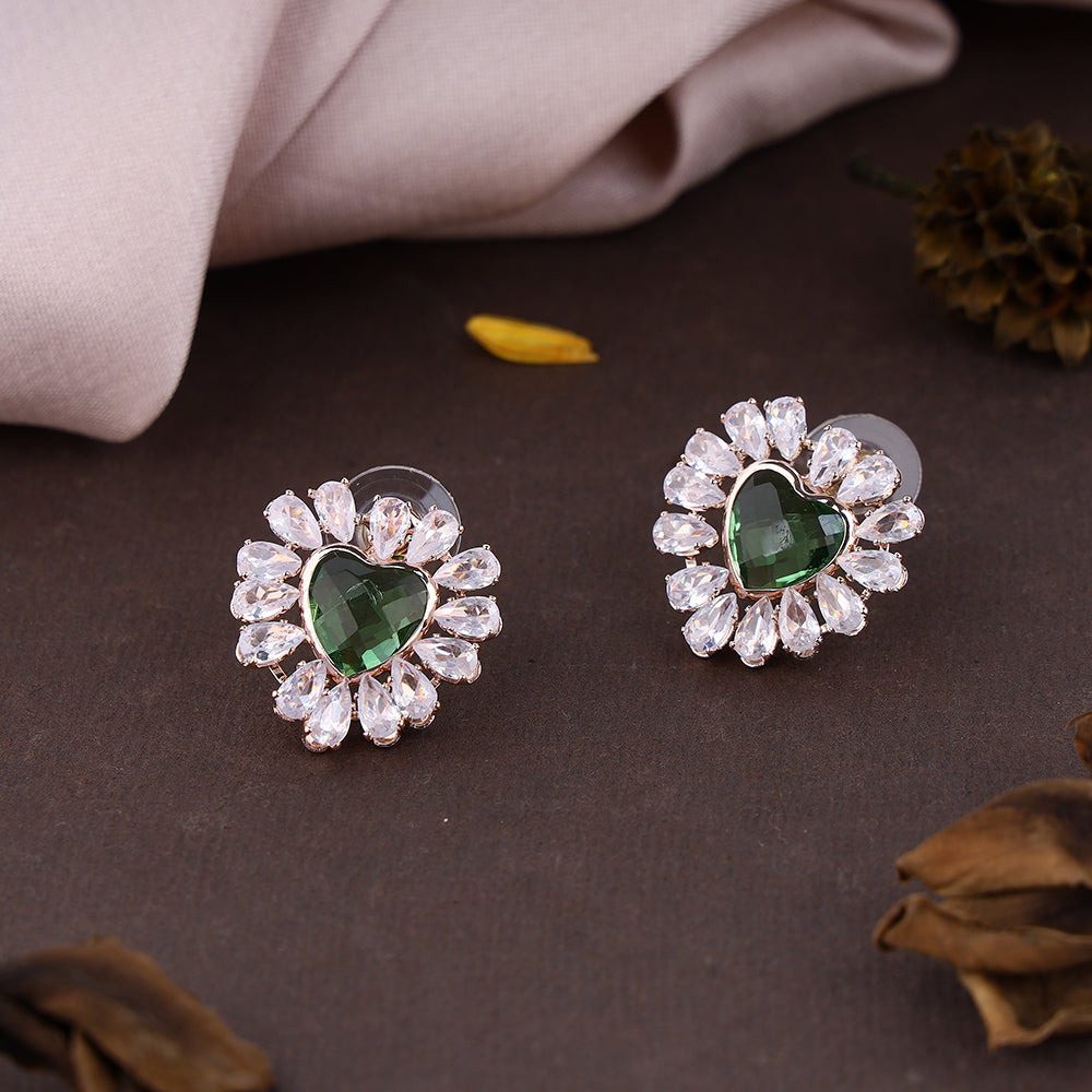 Sparkling Zircon Heart Shape Studs